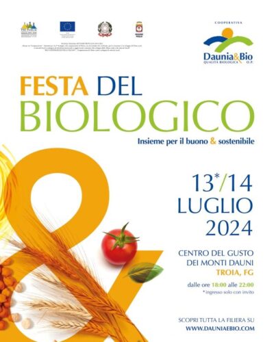 Si è tenuta nella splendida cornice del Centro del Gusto “dei Monti Daunia” di Troia la prima Festa del biologico organizzata dalla O.P. Daunia & Bio nell’ambito del progetto di “Cooperazione di filiera corta e mercati locali”.Nella prima giornata del 13 luglio hanno partecipato, tra soci e invitati, oltre 160 persone che dopo i saluti del presidente della o.p. Stefano Pirro, del presidente di Confcooperative Puglia Giorgio Mercuri e del Gal Meridaunia con Matteo Cuttano anche direttore di Confcooperative Foggia, hanno potuto degustare eccellenti piatti preparati dall’Agriturismo Pirro con i prodotti biologici della cooperativa.